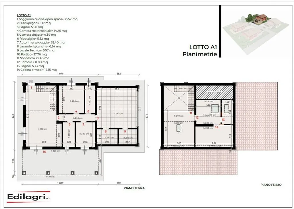 Le ville disposte su 2 livelli si compongono di: