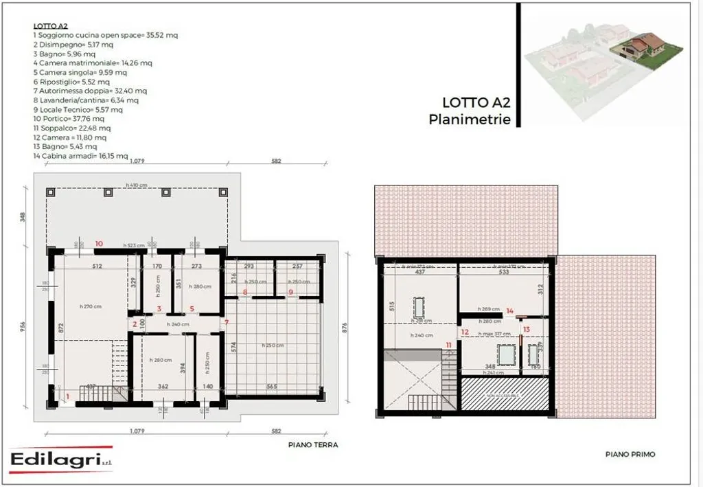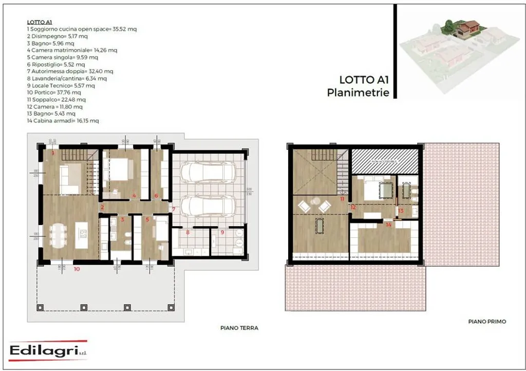 Una soluzione opens space affacciata su un suggestivo porticato che permette di vivere in continuità gli spazi interni ed esterni. La zona notte ospita una camera matrimoniale, una camera singola e un bagno. Il piano è completato da pratici spazi di servizio, tra cui lavanderia, locale tecnico e ripostiglio.