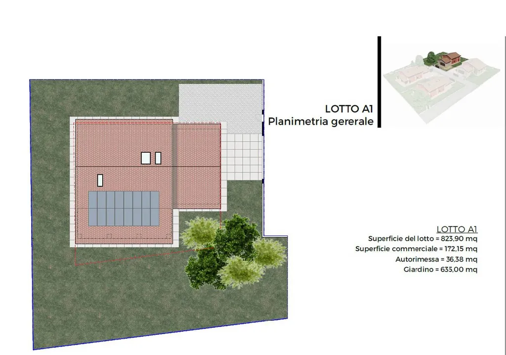 Il comparto sarà completamente recintato e dotato di un unico accesso carraio e pedonale dallesterno; ogni villa sarà inoltre delimitata da un proprio cancello carraio e pedonale privato, garantendo sicurezza e riservatezza.