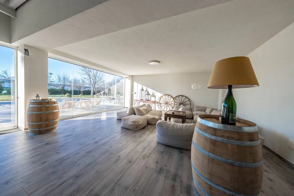 Varcando il cancello, si viene accolti da un ampio parco privato, uno spazio intimo e avvolgente, pensato per offrire privacy, silenzio e benessere. Al centro del giardino, la piscina a acqua salina di 10 x 5 metri diventa il fulcro della vita allaperto: un luogo dove il tempo rallenta, tra giornate di sole, momenti di relax e convivialità.
